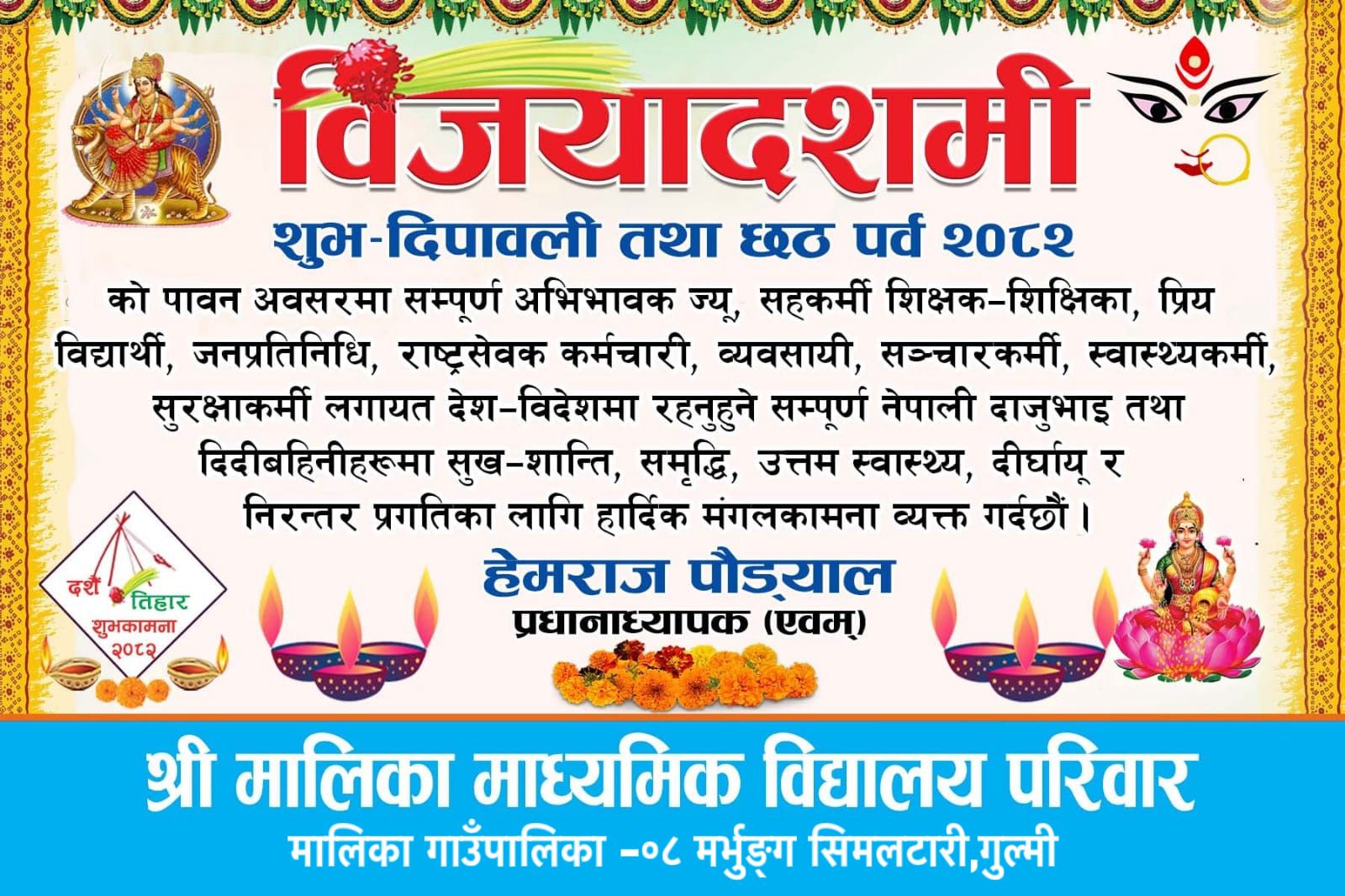 जिल्लाको मालिका गाउँपालिका–३ म्यालका २३ वर्षीय भोटबहादुर बिकले शनिबार दिउँसो धारिलो हतियार प्रहार गर्दा उनका बुबा ५० वर्षीय धन बिकको घटनास्थलमै मृत्यु भएको जिल्ला प्रहरी कार्यालय गुल्मीका प्रहरी नायब उपरीक्षक (डीएसपी)गङ्गा बहादुर सारूले जानकारी दिए।